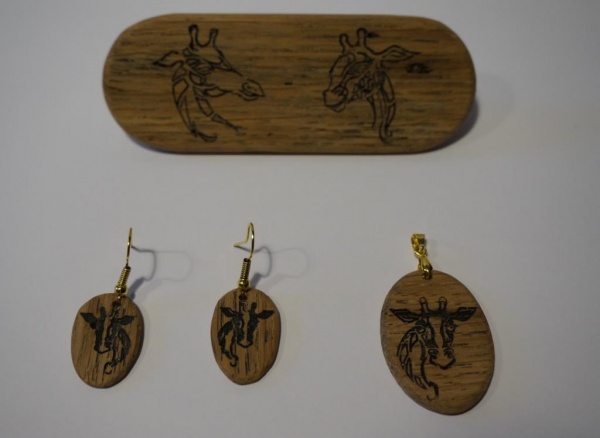 - Parure en bois thème girafe naturel chêne.